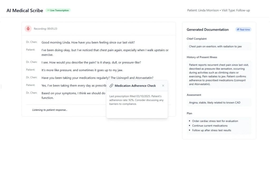 ✅ Real-Time Ambient Scribing – OneChart listens during patient visits and auto-generates structured notes (Subjective, Objective, Assessment, Plan).